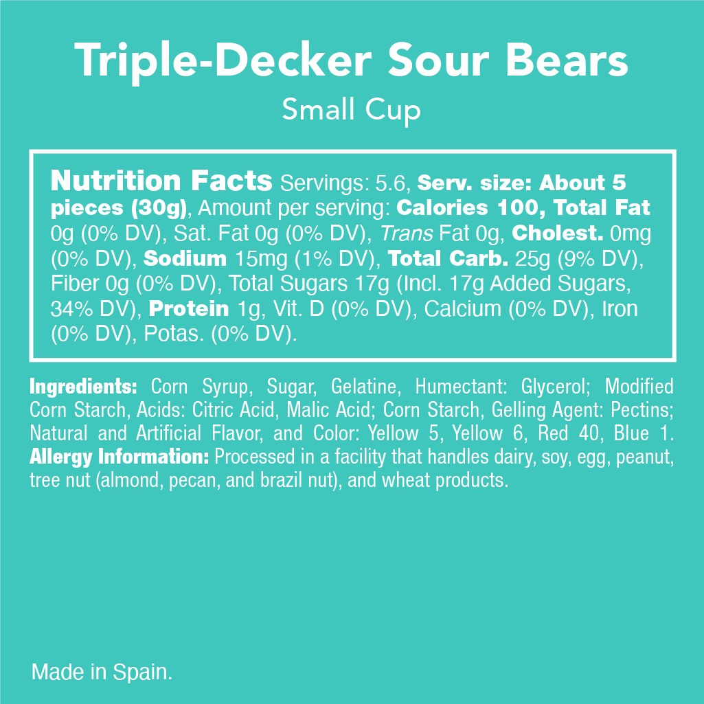 Triple-Decker Sour Bears Triple-Decker Sour Bears Product formSKU: RS1603-03-01 Free pickup in our shop(s) Free pickup in our shop(s) Quantity Add to cart Must order in minimum of: 6 Must order in multiples of: 6 California Residents see Prop 65 Warning